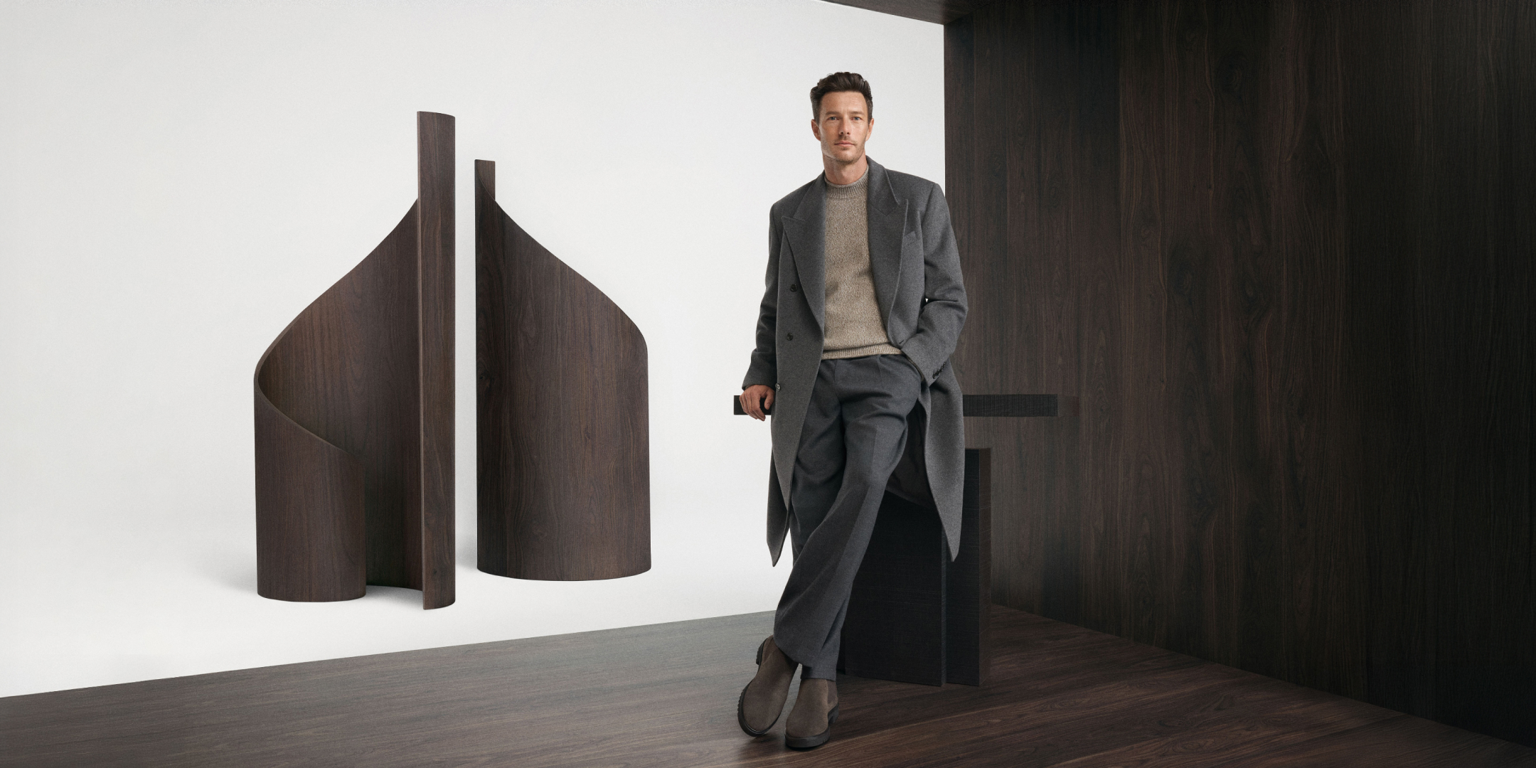 The new LIMÉ Man collection is inspired by shades of brown. The main character showcases looks in a gentle style. At the heart of the capsule are pieces crafted from natural fabrics — wool, cashmere, genuine shearling, and premium cotton — designed to build a versatile winter wardrobe.