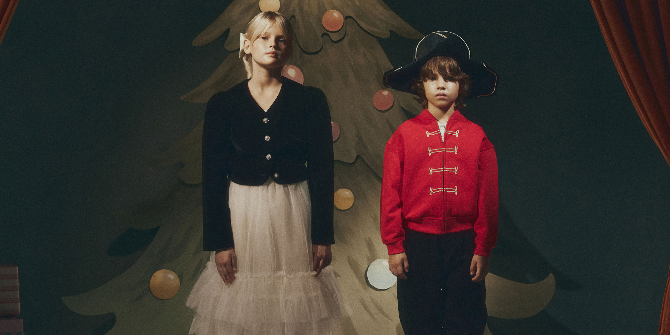 Новая кампания LIMÉ Kids переносит в атмосферу импровизированного театра. Юные модели демонстрируют образы для праздничного сезона.