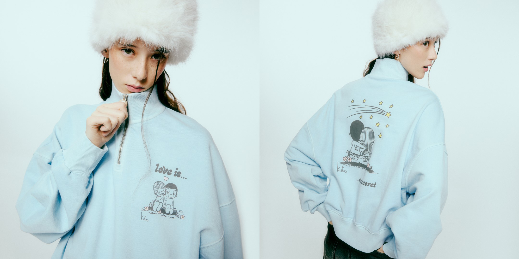 Именно эти тёплые сюжеты мы перенесли на базовые вещи: оверсайз футболки, свитшоты с героями комиксов, джемпер на молнии и носки с фирменной надписью.
