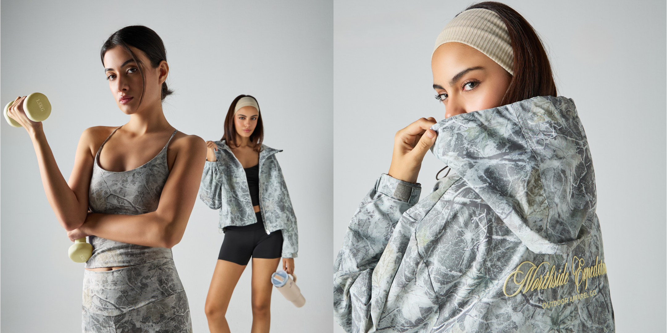 В коллекции представлены комплекты с шортами и леггинсами, топы, майки и худи. Эластичные материалы, выверенный крой и универсальная палитра позволяют чувствовать себя комфортно как на тренировке, так и в городе. Вещи легко сочетаются между собой и органично смотрятся с повседневным гардеробом.