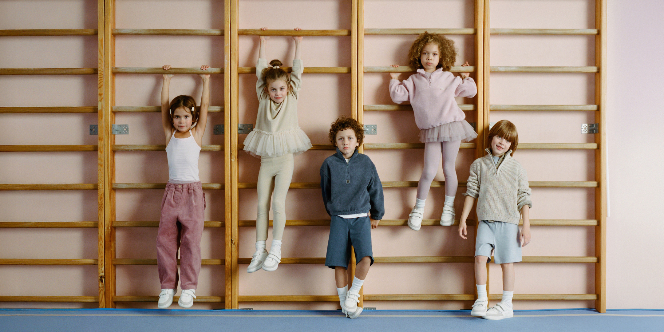 Съемка новой капсулы для девочек и мальчиков 3-6 лет вдохновлена спортом. В центре внимания — комфортные модели, которые не будут сковывать движения во время активных игр.