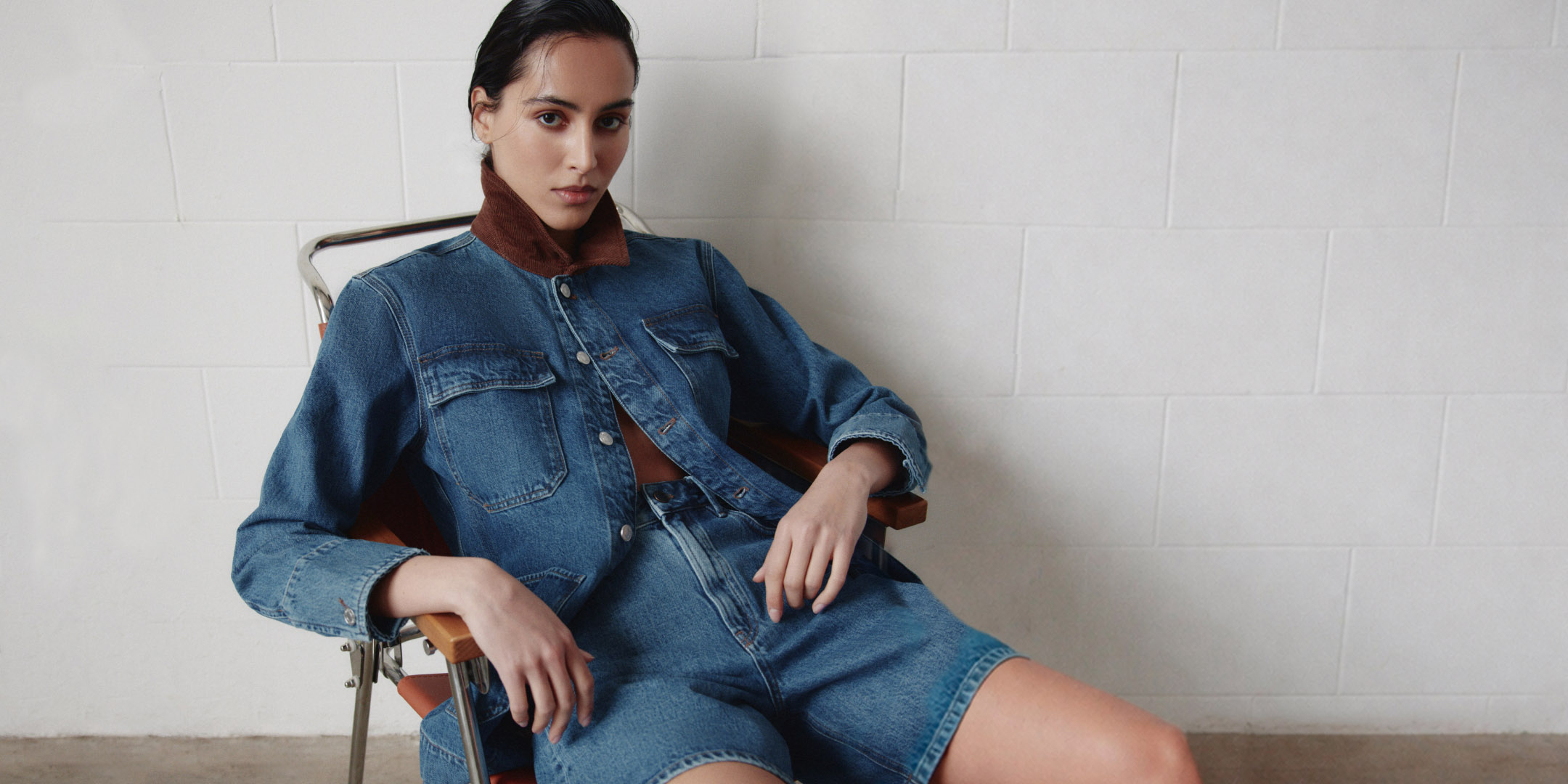 Съемка прошла в индустриальном пространстве, где акцент сделан на силуэте, посадке и фактуре. Такой подход позволяет рассмотреть деним вне привычных сценариев и показать его как гибкую базу для повседневного гардероба.