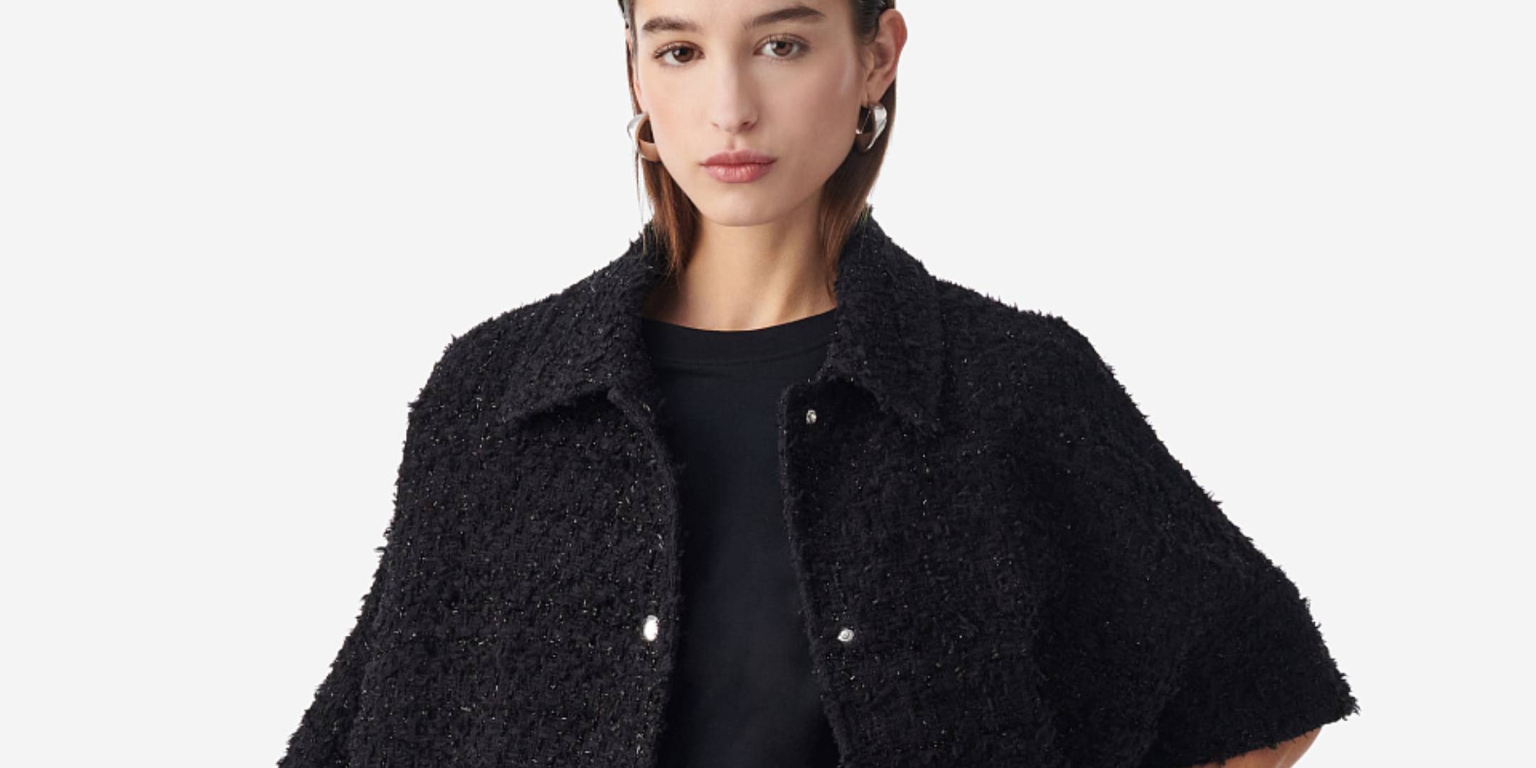 Твид IRO гармонично сочетается с кожей — брюками, сумками и аксессуарами, создавая стильные и тёплые ансамбли с характером.