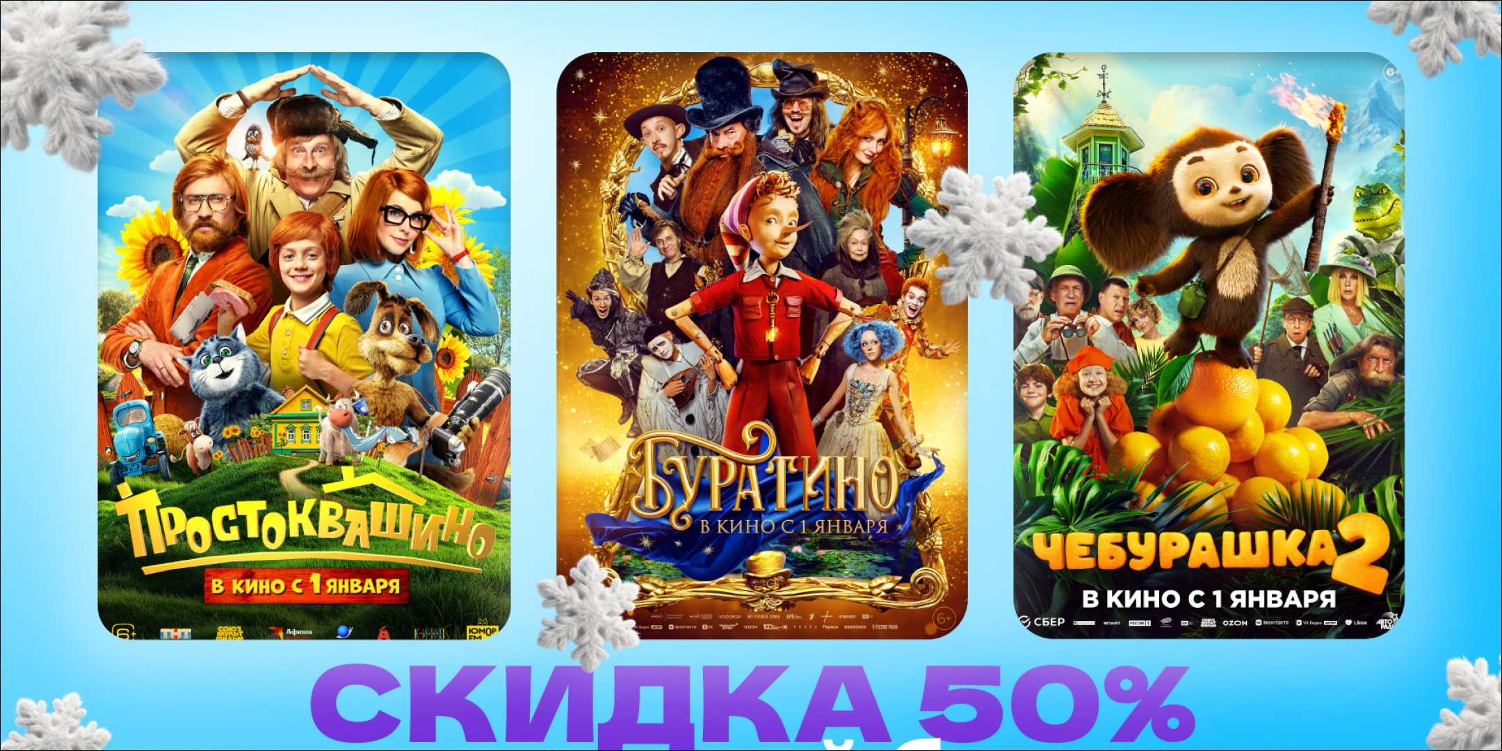 Новогодние новинки кинопроката с 50% скидкой для детей от 4-х до 12-и лет: