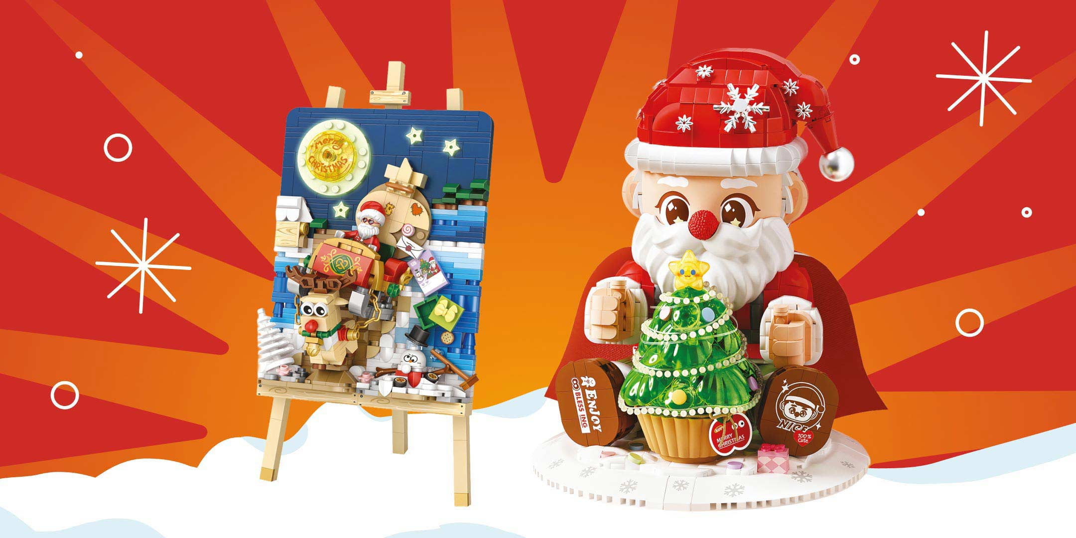 Один из новогодних наборов на выбор: LOZ 1282_MK «Новогодняя картина» или LOZ 1283_MK «Рождественская елка на мольберте». Эти наборы – готовый праздничный декор, который превращает обычный стол или полку в уютный зимний уголок.